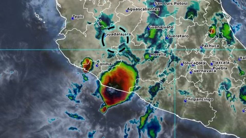 A las 22:00 horas del miércoles, el fenómeno estaba en tierra a 40 kilómetros al sureste de Guadalajara.