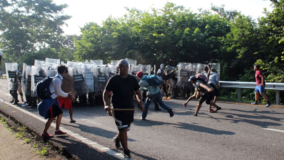 Ciudad de México.-  La caravana migrante que viaja por Chiapas se enfrentó ayer con la Guardia Nacional y agentes del Instituto Nacional de Migración (INM), dejando varios arrestados y cinco elementos con lesiones de consideración.