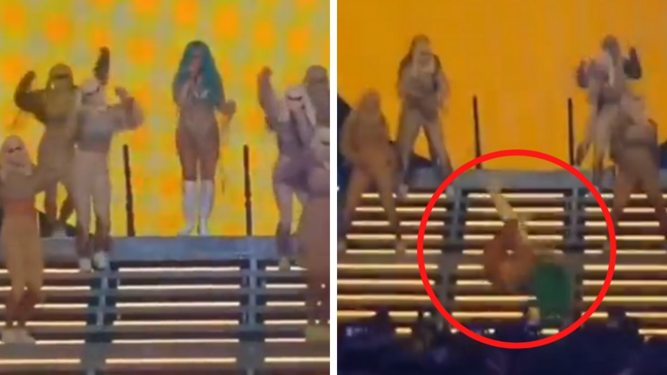 El momento fue desconcertante no solo para los fans de la colombiana, sino para su propio elenco, quien tuvo que detener su coreografía de baile para asistir a la famosa.