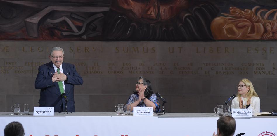 El juez constitucional y experto en la figura del recurso legal del amparo reconoció a sus compañeros del pleno del alto que lo acompañaron en este homenaje: Jorge Mario Pardo Rebolledo, Javier Láynez Potisek, Juan Luis González Alcántara Carrancá, Loretta Ortiz y, por supuesto, Norma Lucía Piña Hernández.