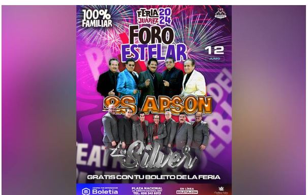 “Vienen los Apson y los Silvers al teatro estelar, con su acceso de 70 pesos pueden ver las personas la presentación de estas dos agrupaciones”, comentó Karla Sánchez, encargada del área de comunicación social de la Feria.